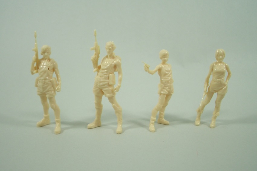 左から1/35スケールのナナシ、ハックル・G・トンプソン、ジョルジュ・ジュールダン、チコ・ビエンテ。