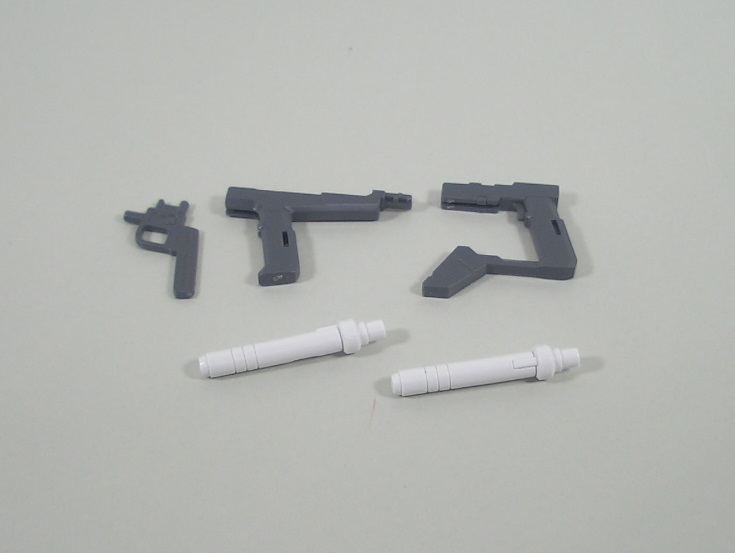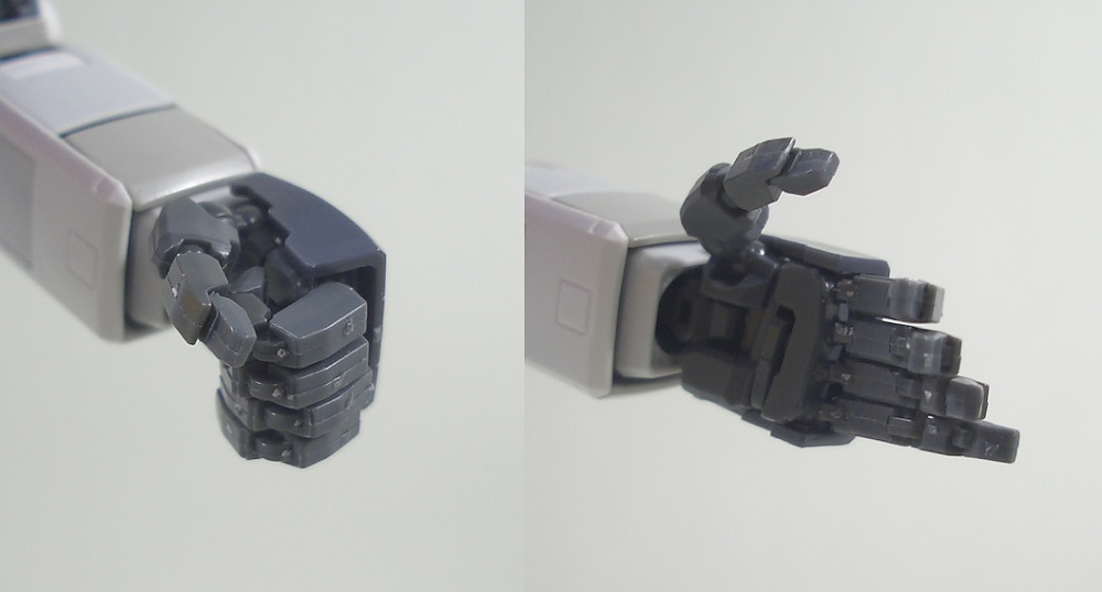 手は5本の指がそれぞれ可動するタイプで、掌には武器保持用のピンが折り畳まれています。