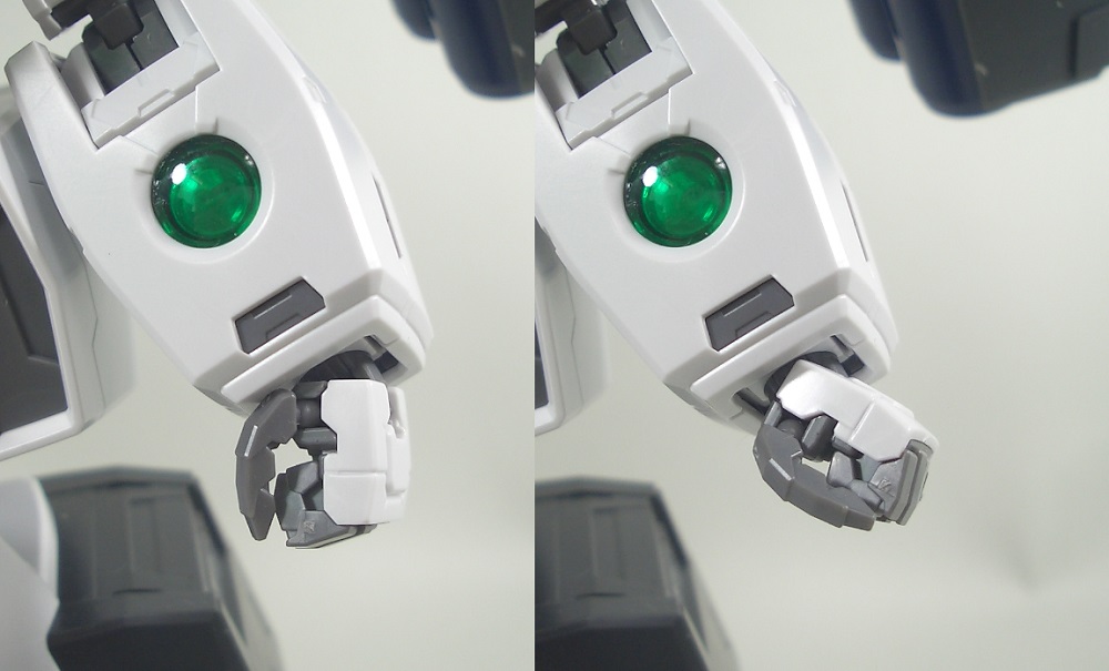 頭部センサーやGNバズーカのセンサー部、各部にあるグリーンの球体パーツにはクリアーパーツが使用されており、GNケーブルにはホログラムパーツが使用されています。